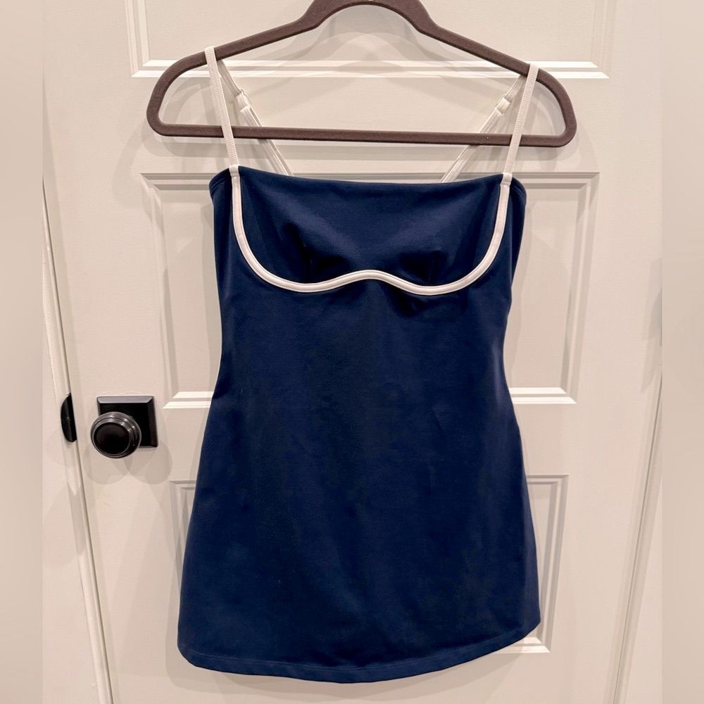 How cute is this dress? From the contrasting piping to the adorable A-line fit that swoops in at the waist and eases out through the hips, there’s nothing not to love. It's practical, too, with built-in shorts (plus pockets) and a shelf bra with removable cups. And the Airbrush fabric is smoothing but not overly compressive—prime for working out or wearing out.