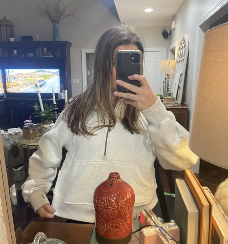 Fell in love at first wear 💗 So soft against the skin and the half-zip makes it easy to throw on during quick errands 🛒 Got compliments within hours of wearing it 😊 Paired it with leggings and boots—effortless chic vibes only 💃