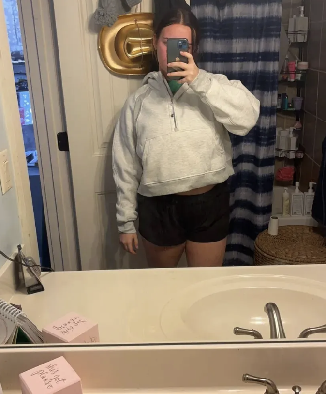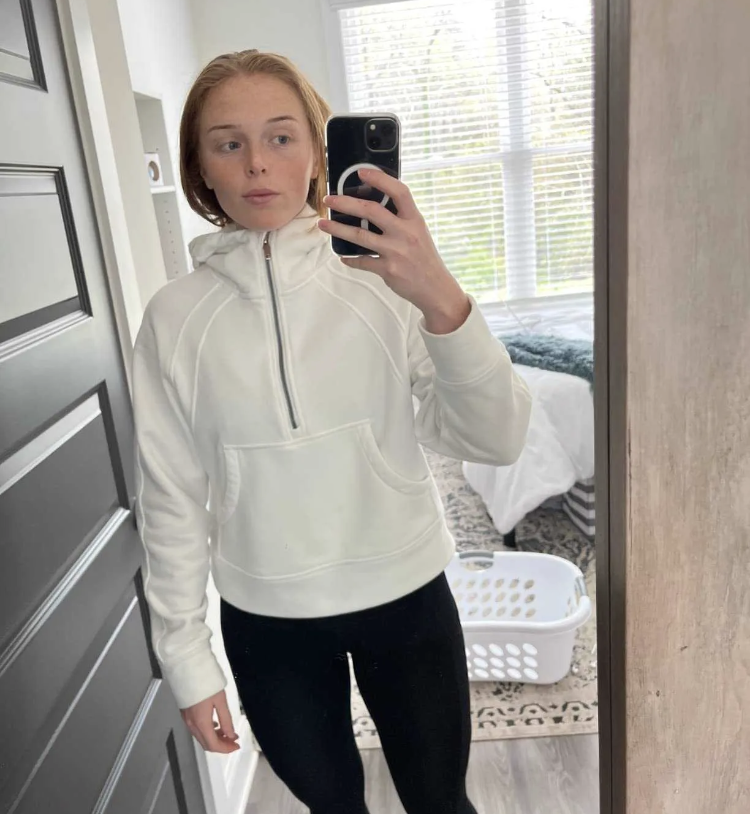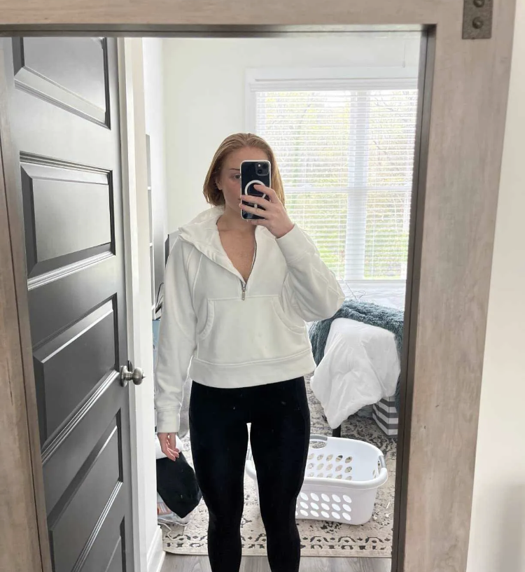 This is a great LULULEMON sweatshirt! l get lots of compliments on it every time l wear it. The fit is comfortable and, while it is shorter than a usual sweatshirt, this cropped style is very trendy these days. The material is thick and the sweatshirt is warm, making it perfect for cooler weather. it also holds upwell in the wash, maintaining its shape and color. I am so pleased with this purchase that l will be buying it in other colors. Highly recommend for anyone looking for a stylish and cozy sweatshirt!