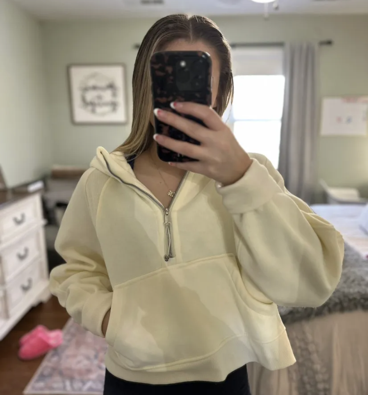 The Gym People Women's Hoodies Half Zip is so cute and comfortable! This sweatshirt is almost identical to the Lululemon scuba but half it's price! It is perfect for everyday use and active wear. The sweatshirt also thumb holes but they are tight around your fingers. l definitely recommend this sweatshirt and will be buying more colors in it!
