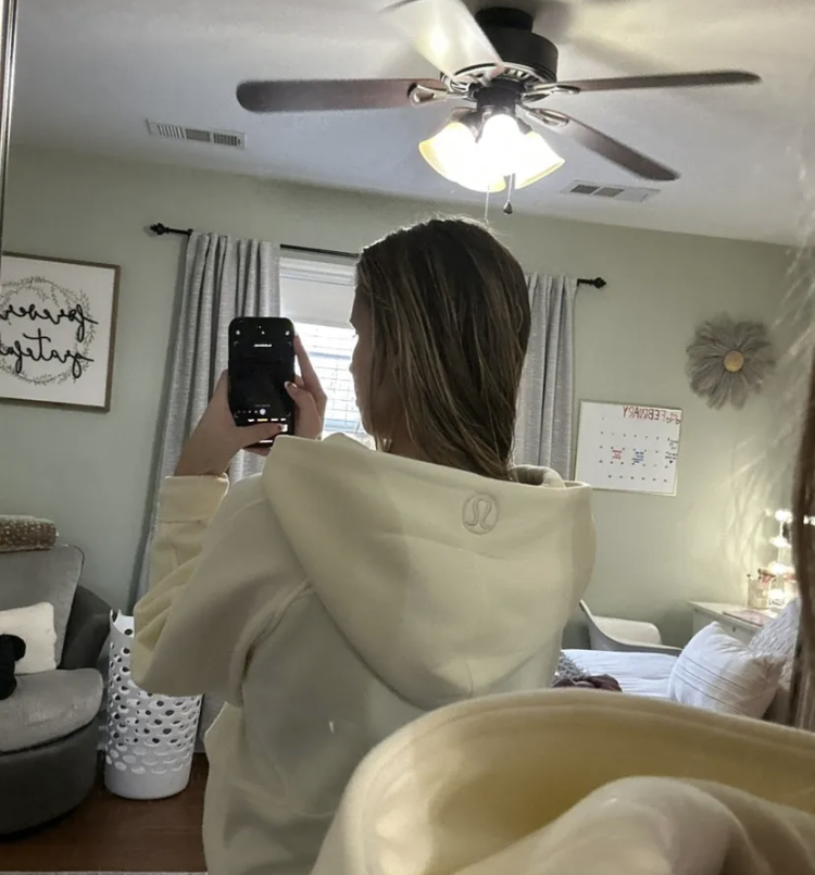 I love this LULULEMON sweatshirt! It is so thick seems to be very high quality materials! Very cute affordable. It will last a long time. It is also very warm.