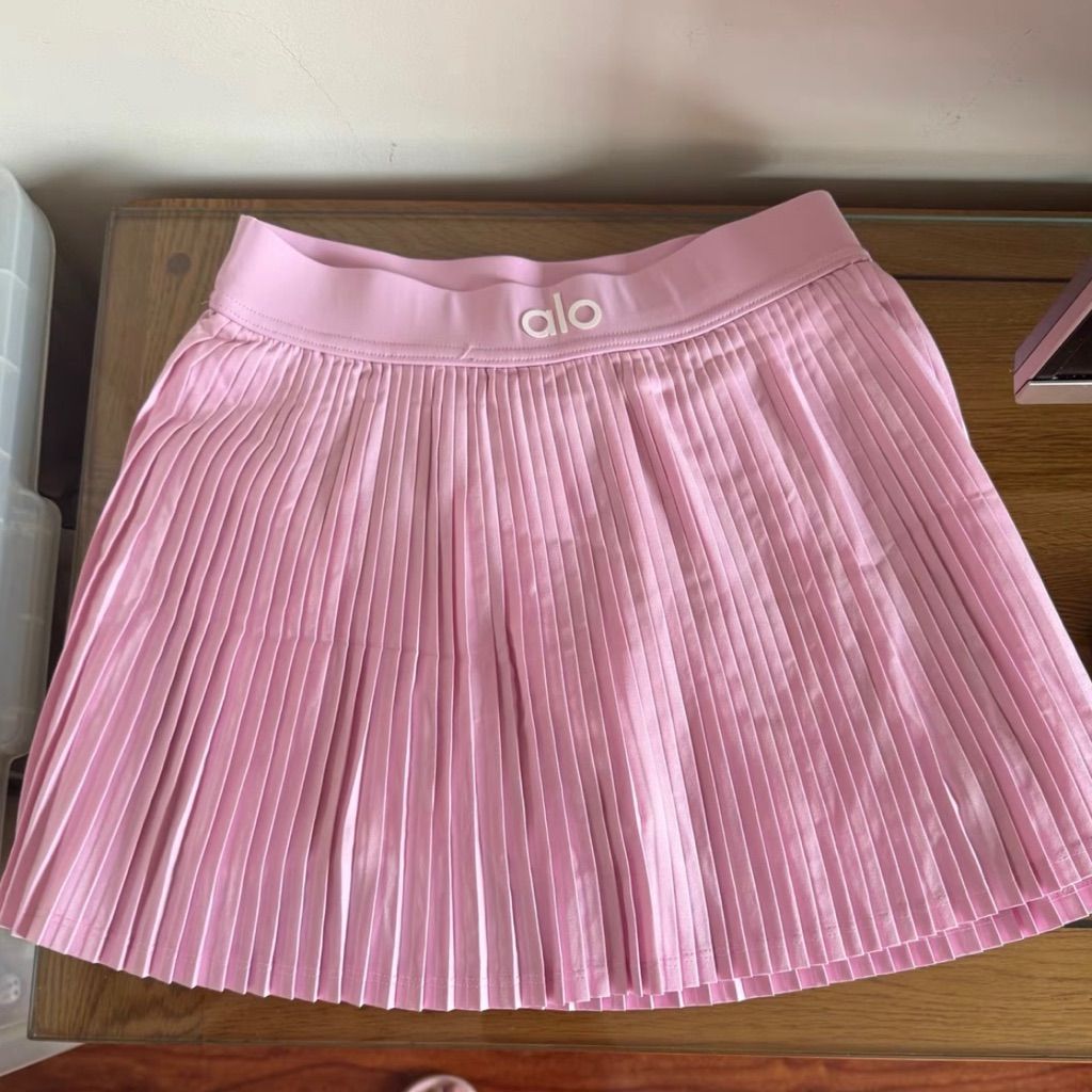 Meticulously engineered for tennis enthusiasts and modern women who value both performance and style. Crafted from high-performance lightweight fabric with exceptional breathability and stretch, it keeps you cool during intense matches. The A-line silhouette moves gracefully with every swing, while built-in shorts provide secure coverage for serves and volleys. Functional side pockets offer convenient storage for balls, and a subtle back slit adds dynamic flair. From competitive tournaments to daily practice, club socials to casual wear, this skirt becomes a versatile wardrobe essential. With thoughtful details—from the precisely measured waistband to flat-lock stitching—alo seamlessly blends function and aesthetics, empowering you to move with confidence and grace on and off the court. -